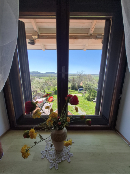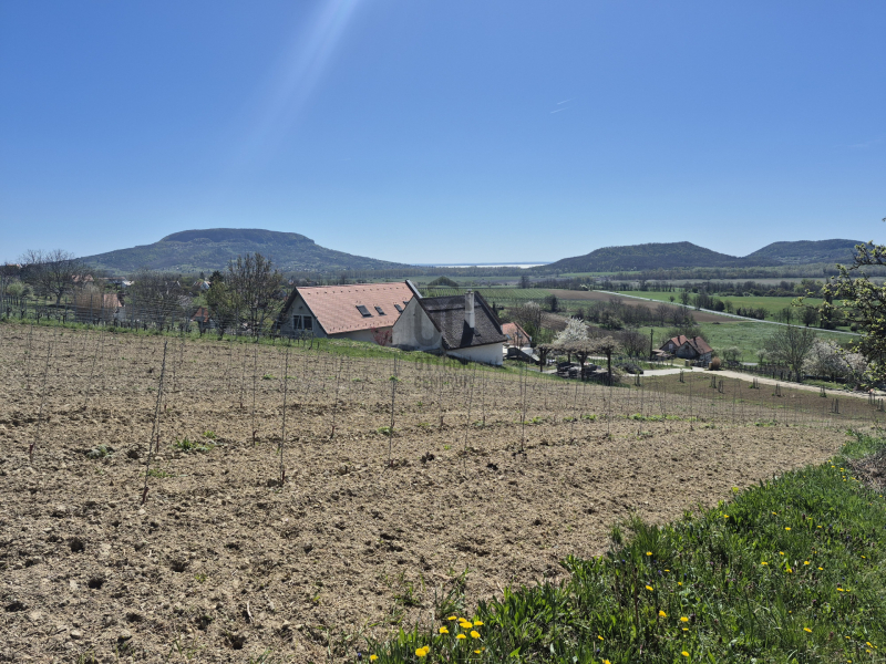 A kertben gyümölcsfák, egy hatalmas cseresznyefa, füge és pár sor szőlő is található, minden pontjáról lélegzetelállító tanúhegyes, és balatoni örök panorámában gyönyörködhetünk!