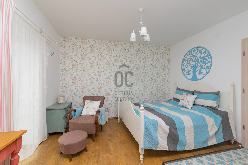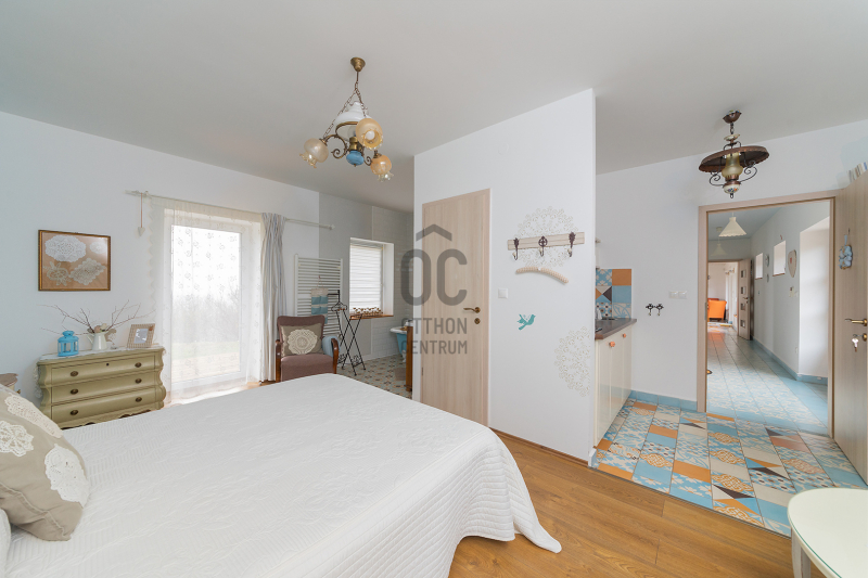 - 2014-ben épített hőszigetelt tégla lakóingatlan, melynek össz nettó alapterülete 366 m2 (Fsz+Tetőtér+Télikert+Pince). Ebből a saját lakórész: Amerikai konyhás nappali, plusz 5 hálószoba, 2 fürdőszoba, háztartási helyiség. Panoráma ablakok, cserépkályha teszik nagyon egyedivé és hangulatossá. A vendégrészben: 4 darab saját fürdőszobás apartman. Elektromos és vegyes tüzelésű kazán, melyeket egy nagy méretű puffer tartály egészít ki, plusz légkondik.