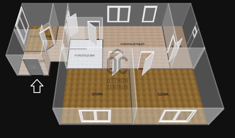 - 89,79 m2 hasznos lakótér (2 és fél szoba, konyha-étkező, kamra, fürdőszoba, előszoba)