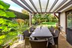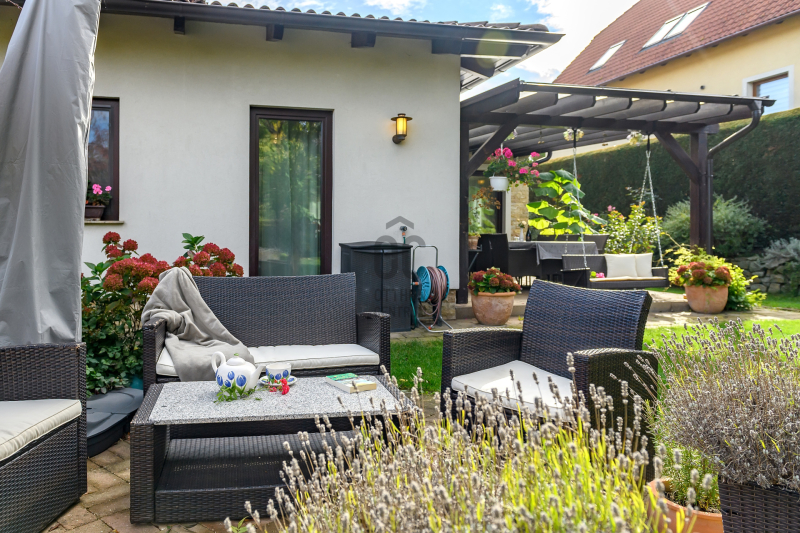 A nappali közvetlen teraszkapcsolattal rendelkezik, így a kert szinte a lakótér folytatása.