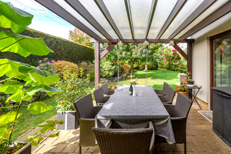 Az 1238 m²-es, parkosított kert gondosan megkomponált: