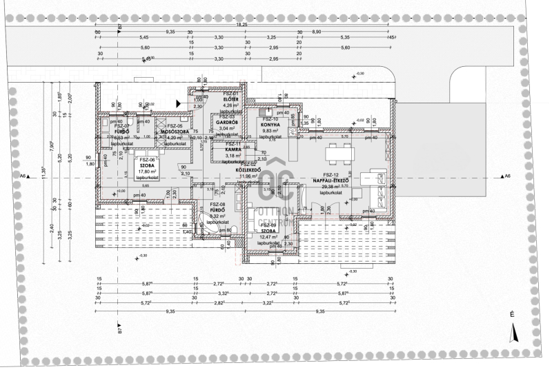 -110 m2 lakótér + dupla 17,5 m2 terasz + 600 m2 kert