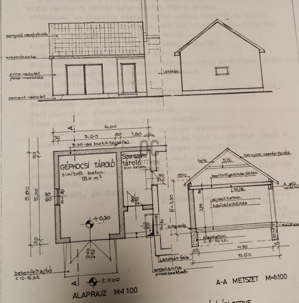 - beton alapra épült téglából, 10 cm szigeteléssel, a tető héjazata cserép