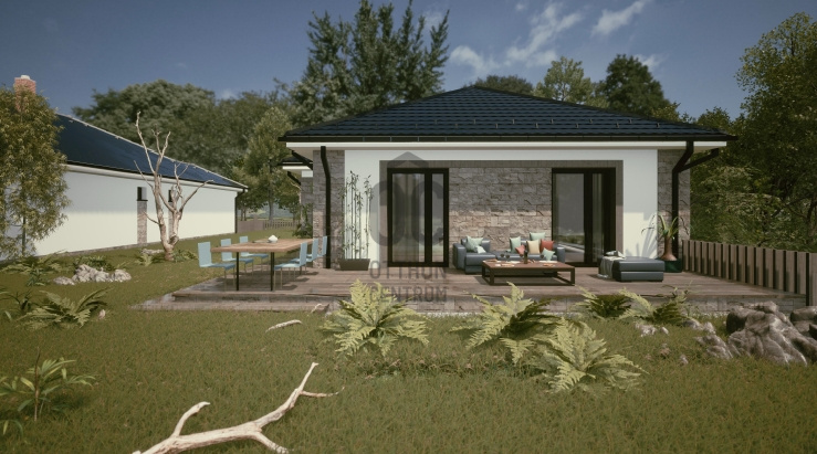 A nagy, fedett terasz pedig nemcsak kényelmet, hanem valódi szabadságot biztosít – legyen szó esti borozásról vagy családi hétvégékről a kertben.