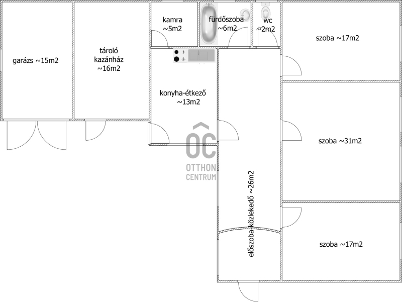 – a ház folytatásában: tároló, kazánház, garázs, fatároló, baromfi ól.