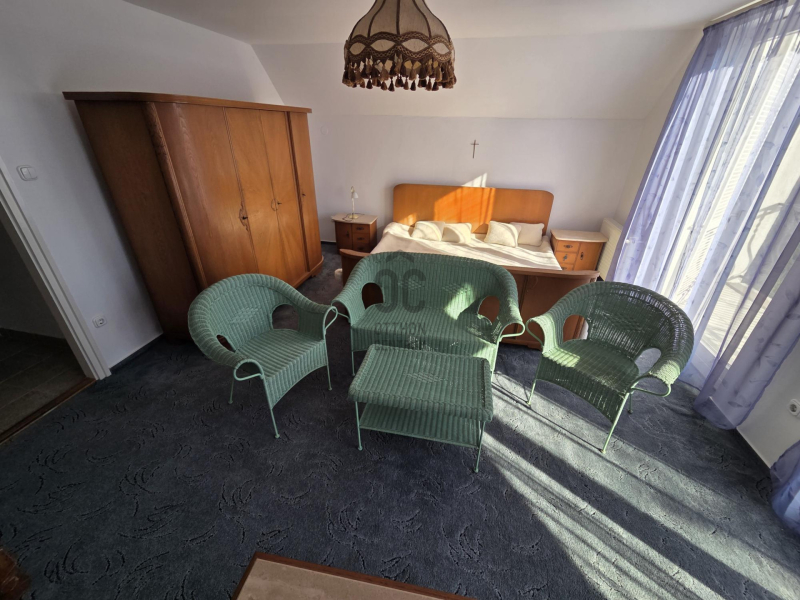 - földszinti rész: 2 hálószoba (15m² és 16m²) , konyha- étkező (25m²) , fürdőszoba (8m²), wc (2m²), közlekedő (10m²), lépcsőház (8m²) , nappali ( 27m²)
