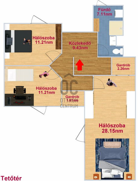 + A 66nm-es tetőtérben egy második fürdőszoba is ki lett alakítva, továbbá 3 db hálószoba amihez még saját gardróbok is ki lettek építve.