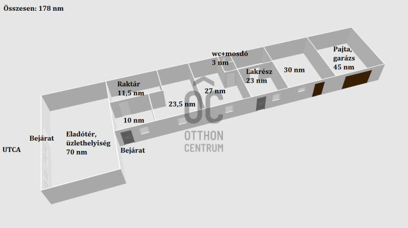 Tartozik hozzá egy 23nm-es különálló lakrész és egy 45 nm-es garázs is, így összesen 178 nm területű.