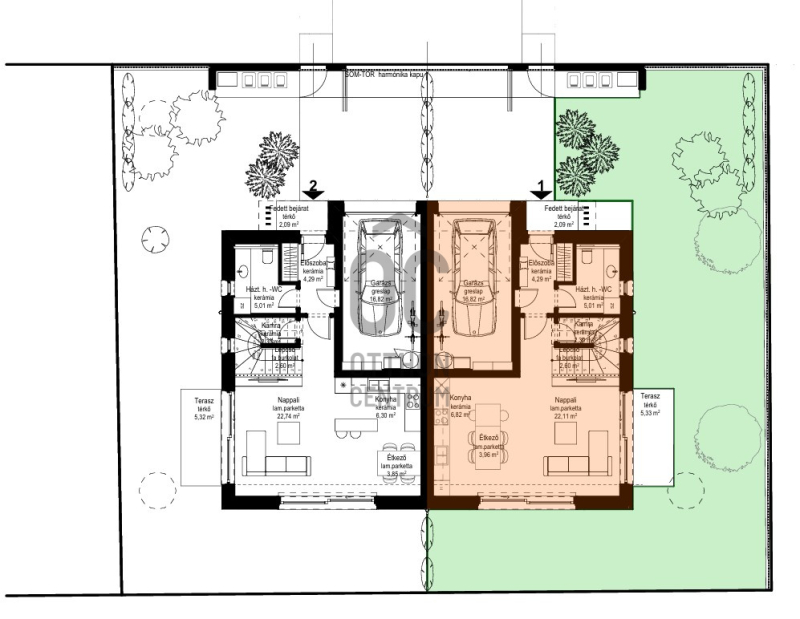 - Tágas, 33 m²-es amerikai konyhás nappali, közvetlen teraszkapcsolattal és kerttel