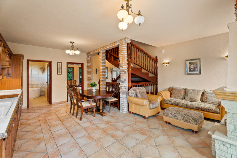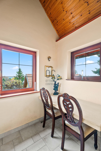 - A nappali hatalmas üvegfelületei rengeteg természetes fényt árasztanak be, a tágas terasz pedig ideális helyszínt biztosít családi összejövetelekhez vagy kikapcsolódáshoz kellemes, zöld környezetben.