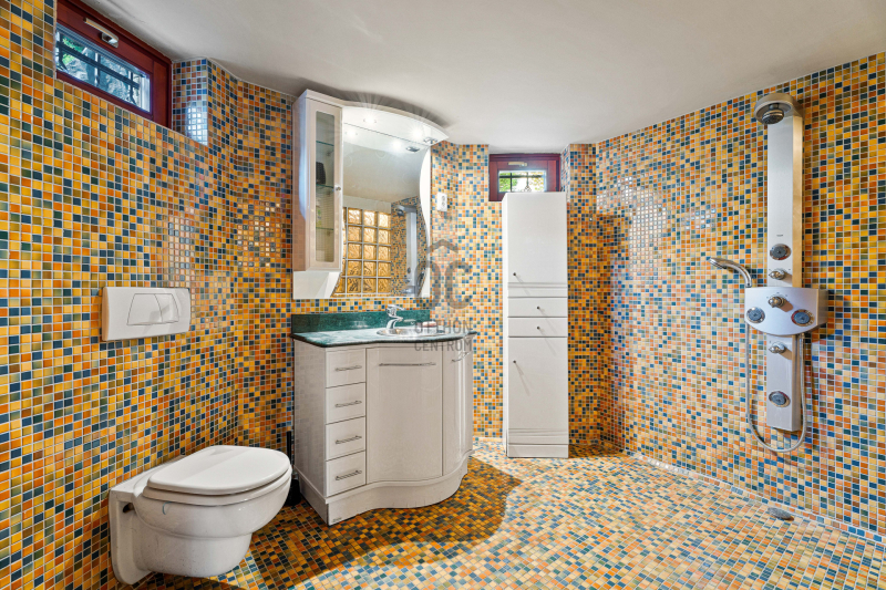 - Zuhanykabinnal felszerelt ablakos fürdőszoba wc-vel