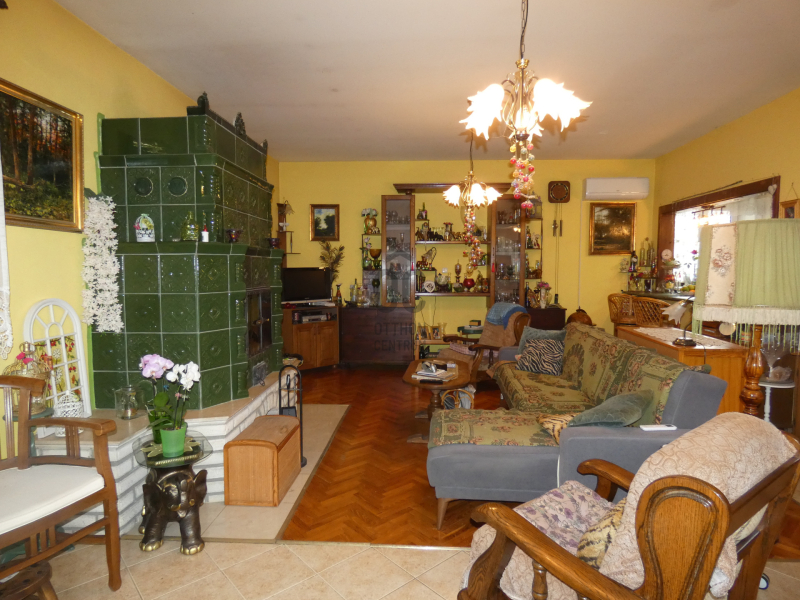 Pécs, ürögi rész elején eladó egy három szintes 2 generáció együttélésére alkalmas családi ház. A ház földszinti részén helyezkedik el a ház gépészeti berendezése, kamra, boltíves pince, egy beállásos garázs és egy vizes blokk zuhanyzóval. A felső szinten lévő lakások megközelíthetők a belső lépcsőházon keresztül vagy a külső lépcsősoron is. Az első szinten lévő lakás konyha, étkező kis nappali, hálószoba kialakítású. Itt kapott még helyet egy vendégszoba és két fürdőszoba és mosdó is. Mindkét szobához kapcsolódik terasz, amelyről szép kilátás nyílik a szembe lévő erdős részre. A közös előtérből egy lépcső vezet fel a 2. szinten lévő lakásba. Itt egy hatalmas nappaliba léphetünk be, amelynek benapozottságáról a nagy ablakok gondoskodnak. A nappaliban lévő kandalló nem csak hangulatot, de kellemes meleget is ad. A konyha átadó ablakon keresztül kapcsolódik az étkezőhöz. Félemeleti részen helyezkedik el a két hálószoba( egyik még befejezésre vár) gardrób, fürdőszoba és mosdó.