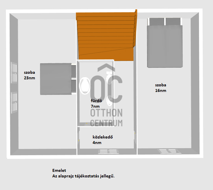 •Emelet: 2 szoba, fürdőszoba WC-vel