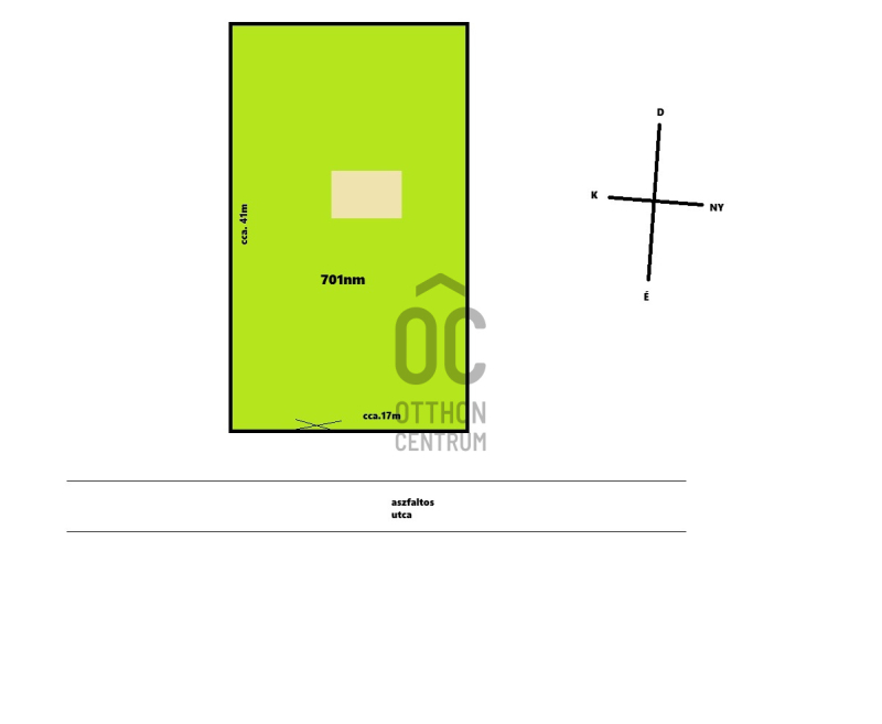 - A telek utcafrontja kb. 17 méter széles, hossza kb. 41 méter.