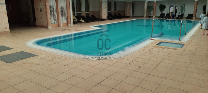 A wellness részleg nagyméretű fűtött medencéje (nyáron nyitott) és finn szaunája korlátlanul használható a tulajdonosok ill. vendégeik részére.