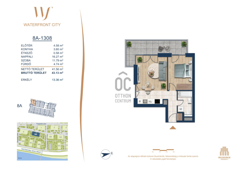 A Waterfront City egy új, modern városnegyed a 3. kerületben, ahol a természet közelsége és a városi kényelem tökéletes egyensúlyban van. A Duna-part közvetlen szomszédságában elhelyezkedő fejlesztés különleges atmoszférát kínál: a sétányt új épületek határolják, üzletekkel, kávézókkal és szolgáltatásokkal, amelyek élhető közösségi teret teremtenek.