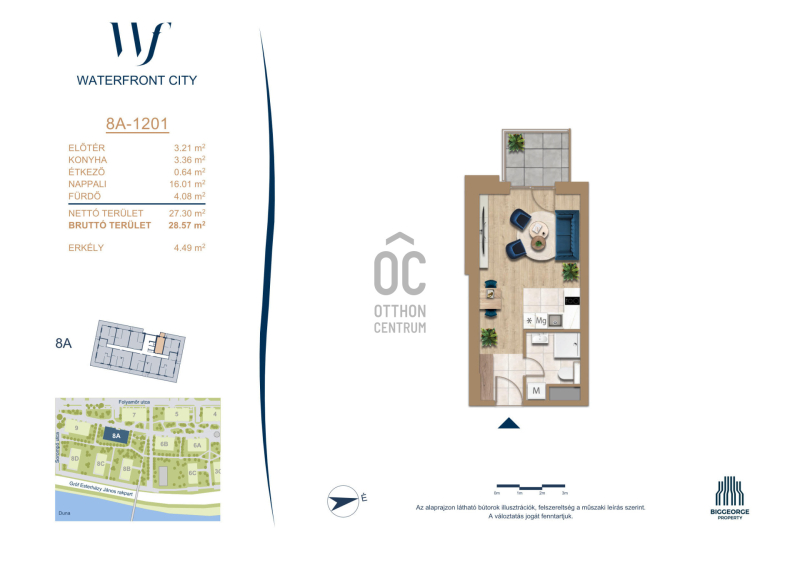 A Waterfront City egy új, modern városnegyed a 3. kerületben, ahol a természet közelsége és a városi kényelem tökéletes egyensúlyban van. A Duna-part közvetlen szomszédságában elhelyezkedő fejlesztés különleges atmoszférát kínál: a sétányt új épületek határolják, üzletekkel, kávézókkal és szolgáltatásokkal, amelyek élhető közösségi teret teremtenek.