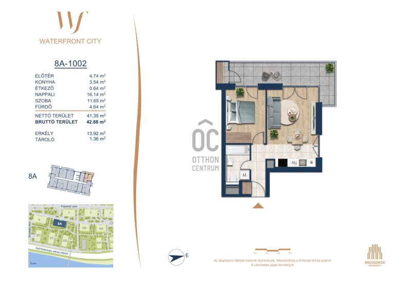 A Waterfront City egy új, modern városnegyed a 3. kerületben, ahol a természet közelsége és a városi kényelem tökéletes egyensúlyban van. A Duna-part közvetlen szomszédságában elhelyezkedő fejlesztés különleges atmoszférát kínál: a sétányt új épületek határolják, üzletekkel, kávézókkal és szolgáltatásokkal, amelyek élhető közösségi teret teremtenek.