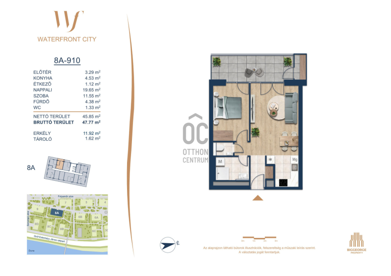 A Waterfront City egy új, modern városnegyed a 3. kerületben, ahol a természet közelsége és a városi kényelem tökéletes egyensúlyban van. A Duna-part közvetlen szomszédságában elhelyezkedő fejlesztés különleges atmoszférát kínál: a sétányt új épületek határolják, üzletekkel, kávézókkal és szolgáltatásokkal, amelyek élhető közösségi teret teremtenek.