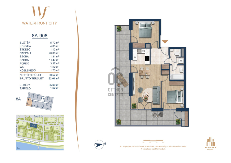 A Waterfront City egy új, modern városnegyed a 3. kerületben, ahol a természet közelsége és a városi kényelem tökéletes egyensúlyban van. A Duna-part közvetlen szomszédságában elhelyezkedő fejlesztés különleges atmoszférát kínál: a sétányt új épületek határolják, üzletekkel, kávézókkal és szolgáltatásokkal, amelyek élhető közösségi teret teremtenek.