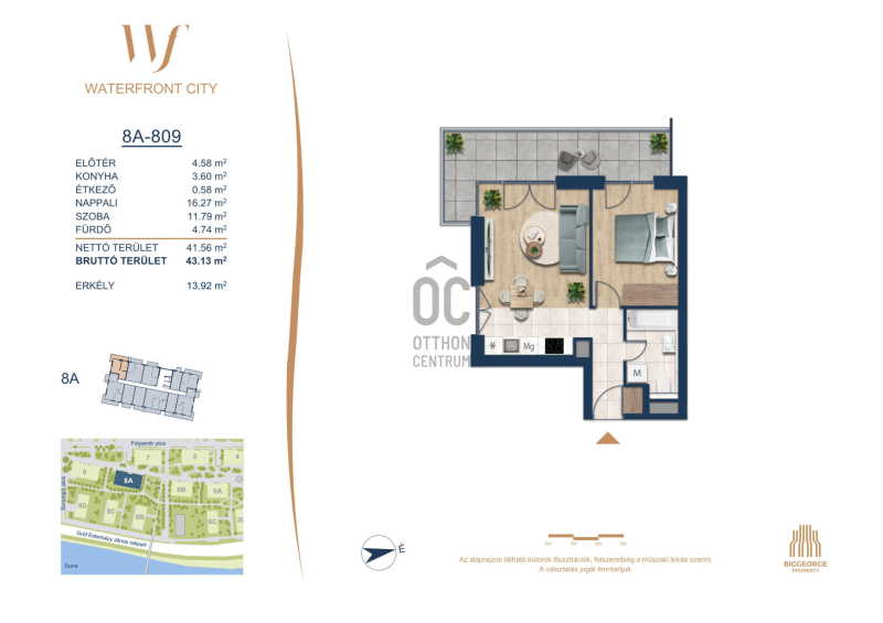 A Waterfront City egy új, modern városnegyed a 3. kerületben, ahol a természet közelsége és a városi kényelem tökéletes egyensúlyban van. A Duna-part közvetlen szomszédságában elhelyezkedő fejlesztés különleges atmoszférát kínál: a sétányt új épületek határolják, üzletekkel, kávézókkal és szolgáltatásokkal, amelyek élhető közösségi teret teremtenek.