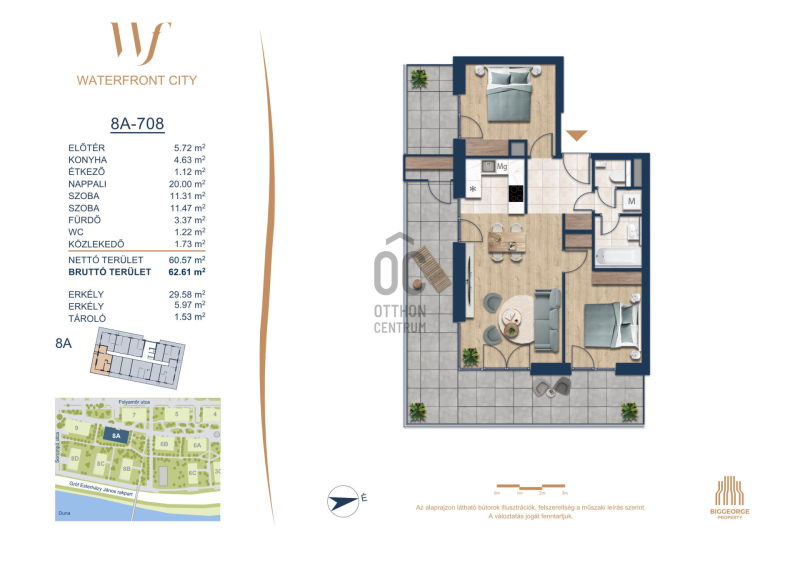 A Waterfront City egy új, modern városnegyed a 3. kerületben, ahol a természet közelsége és a városi kényelem tökéletes egyensúlyban van. A Duna-part közvetlen szomszédságában elhelyezkedő fejlesztés különleges atmoszférát kínál: a sétányt új épületek határolják, üzletekkel, kávézókkal és szolgáltatásokkal, amelyek élhető közösségi teret teremtenek.