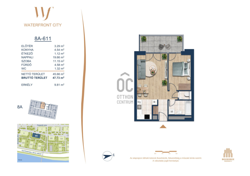 A Waterfront City egy új, modern városnegyed a 3. kerületben, ahol a természet közelsége és a városi kényelem tökéletes egyensúlyban van. A Duna-part közvetlen szomszédságában elhelyezkedő fejlesztés különleges atmoszférát kínál: a sétányt új épületek határolják, üzletekkel, kávézókkal és szolgáltatásokkal, amelyek élhető közösségi teret teremtenek.