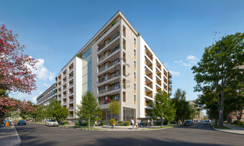 Ahogy közelebb lépsz, a homlokzat letisztultsága, a loggiák ritmikus váltakozása azonnal megragadja a tekinteted. A pálcás korlátok finom eleganciát sugároznak, a napfény pedig játékosan tükröződik a teraszok üvegfelületein. Már kívülről is érezni: ez nem csupán egy lakóépület, hanem egy életérzés.