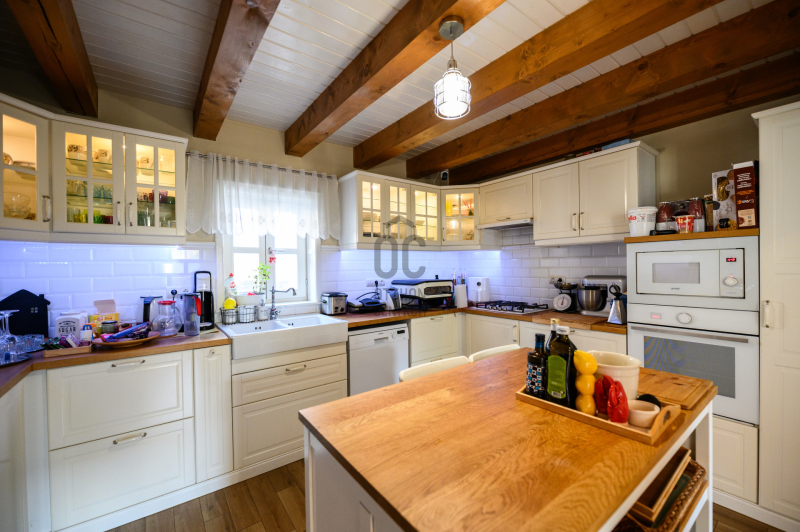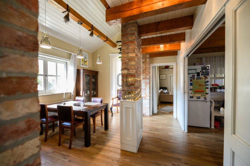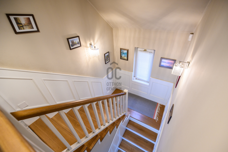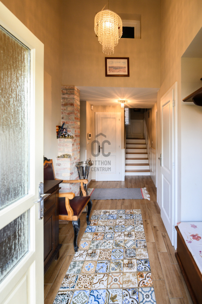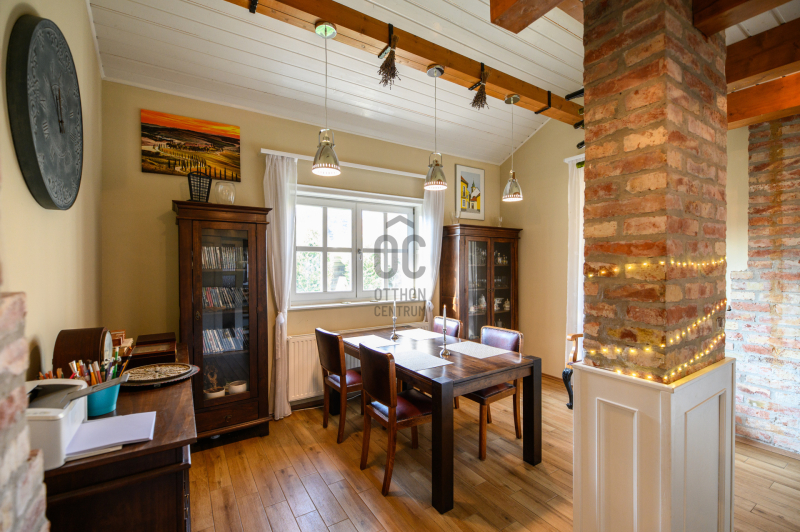 A kandalló és a gázfűtés, valamint a klíma garantálja az ingatlan kellemes hőmérsékletét télen és nyáron egyaránt. Az épületben központi porszívó rendszer, riasztó és kamerarendszer üzemel. A kisház 120 éves múltra tekint vissza, melyben 1 szoba, gardrób szoba, konyha, fürdőszoba és egy kisebb tetőtéri szoba található. A kellemes hangulatot fokozza a hozzá tartozó régi borospince. A főépület hangulatos terasza, a kerti tároló és a kézműves barkácsműhely, valamint a fedett garázs és a három autó számára beállási lehetőség biztosított, melyet kényelmesen automata garázskapuval érhetünk el.
