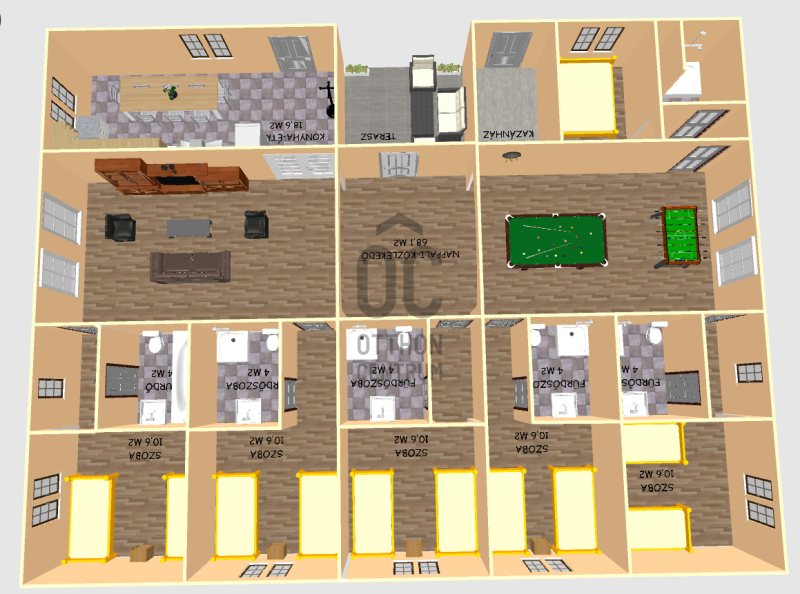 -NAGY BELMAGASSÁG: 372 CM (KONYHA MAGASSÁGA CSÖKKENTVE LETT 302 CM-RE)