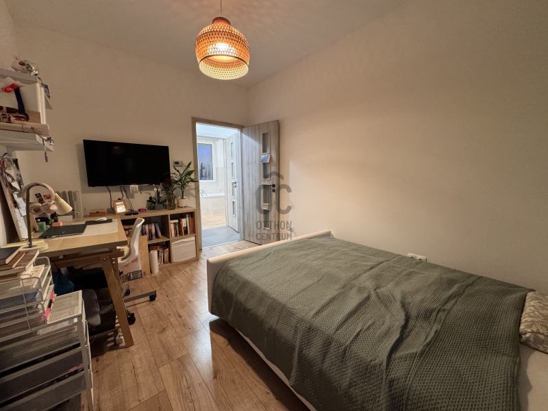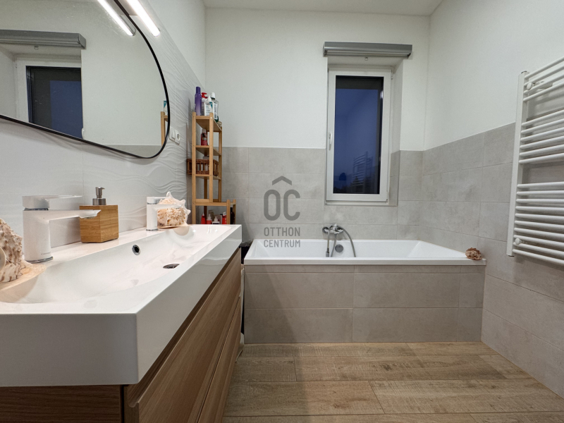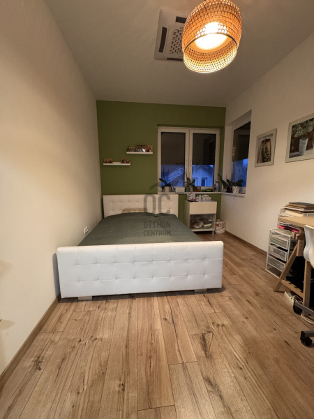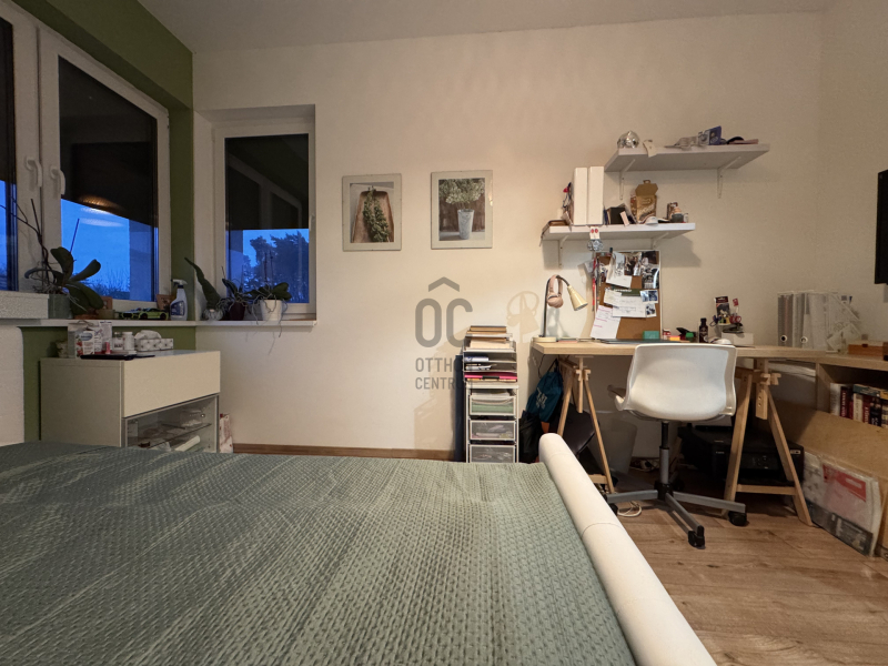 Emeleti szinten: /AZ EMELET TELJES ÉRTÉKŰ, NINCS TETŐSÍK MIATTI TÉRVESZTESÉG!/ 2 jó méretű több ablakos hálószoba, egy jelenleg gardróbként bútorozott félszoba és tágas, kádas fürdőszoba+WC került kialakításra. Világos, barátságos tereiben ideális méretű szobákat kapunk, a lépcsőtér is kellemes, ablakos nem egy sötét lyuk az épületen belül.