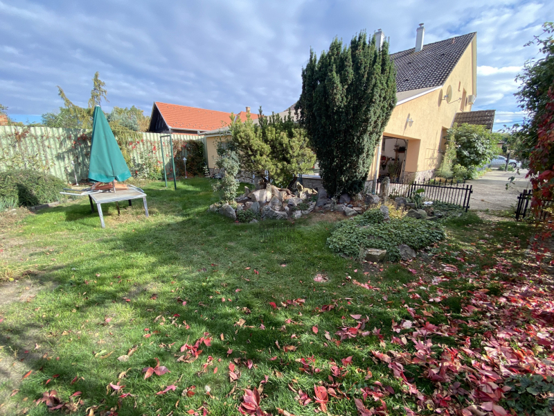 A kertet egy épített szikla kert díszíti, de egy hinta állvány is kapott benne helyet, így alkalmas minden korosztály számára.