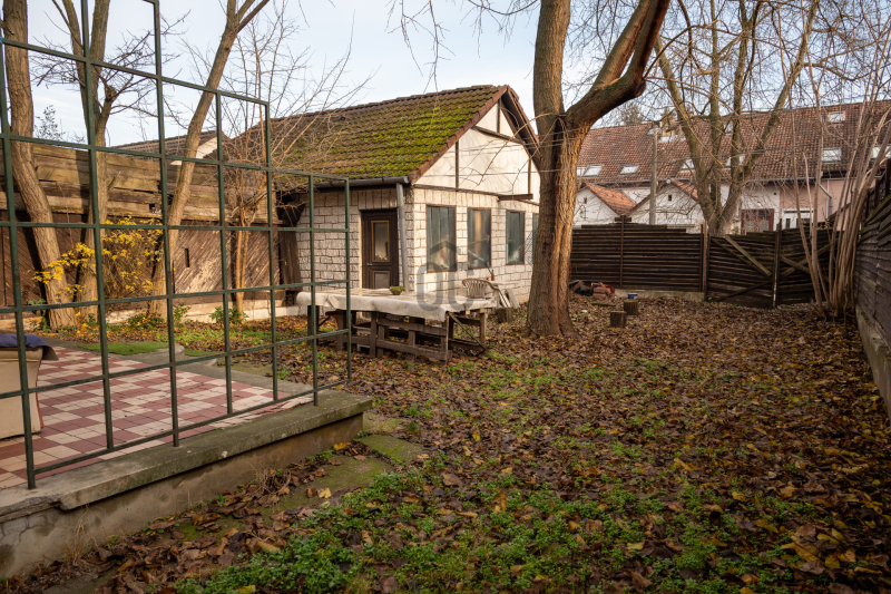 Az udvar rendezett, itt található egy 7 nm-es, fűthető medence, amely különleges értéket képvisel és egész évben használható. A parkolás egy beállásos garázsban megoldott, amely szerelőaknával és elektromos kapuval felszerelt, így akár hobbi célra vagy műhelynek is alkalmas.