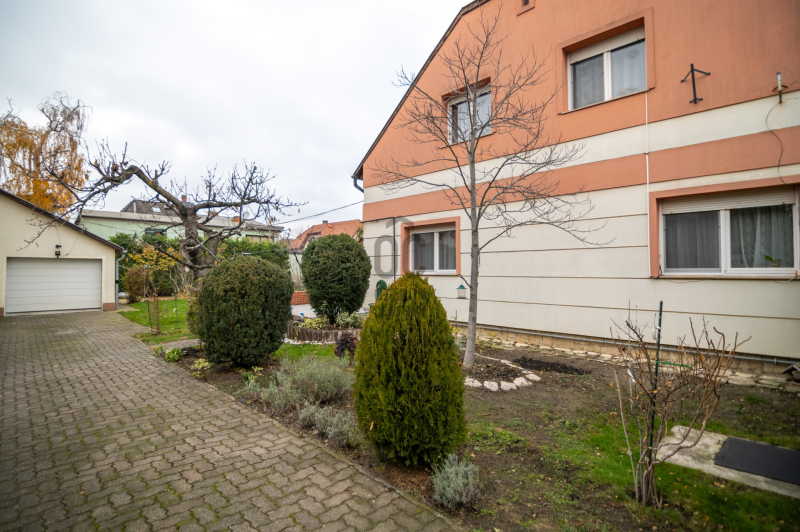 Az 526 m²-es, gondosan karbantartott kertben 13 termő gyümölcsfa, bogyós gyümölcsök kaptak helyet. Mobilról vezérelhető, fúrt kútra kötött okos öntözőrendszer gondoskodik arról, hogy a kert minden évszakban a legszebb arcát mutassa.