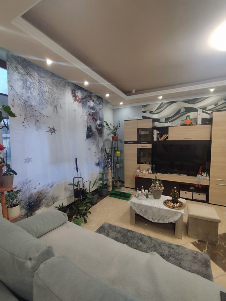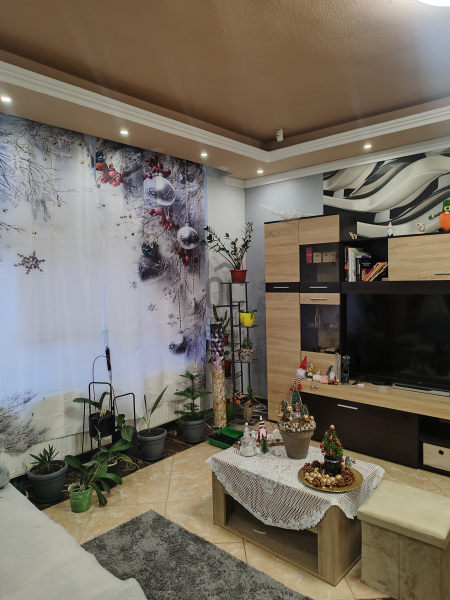 A nappaliban régi de jó állapotú fa nyílászáró található, az ablakok redőnyös.