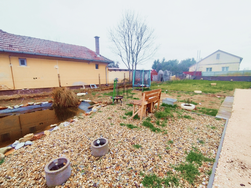 A szépen gondozott, rendezett telken egy hangulatos kis tó, fúrt kút, az udvar hátsó részén ólak, és tárolók találhatóak.