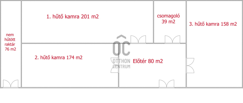 -elosztása: előtér, 3 db hűtőkamra és egy csomagoló helyiség