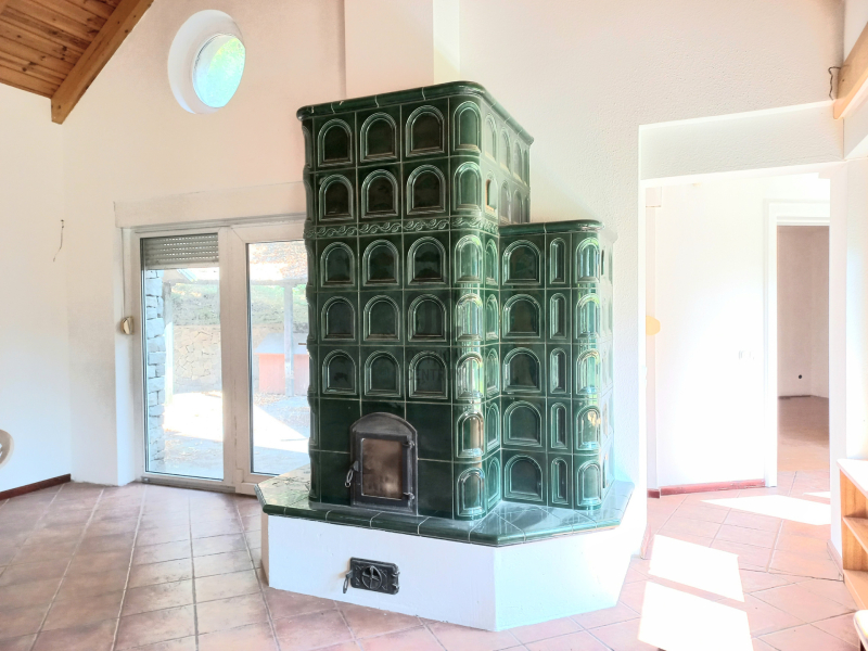 Hangulatos cserépkályha az egyik nappaliban