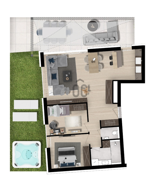 A liftes, modern épületek földszintjén és az első emeleten 4-4 db 48 m2-es, összkomfortos, fedett teraszos lakást, míg a második emeleten 2 db 68 m2-es penthouse-t kínálunk. A földszinti ingatlanokhoz élősövénnyel elválasztott privát udvar, a legfelső szinten pedig mindkét lakáshoz 68 m2-es, napvitorlával árnyékolt, vagy igény esetén végleges fedéssel ellátott tetőterasz, illetve jakuzzi tartozik. A leendő tulajdonosok egy teljesen gépesített, kompakt luxusotthont kapnak külön hálószobával, hasznos terekkel és fedett terasszal.