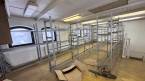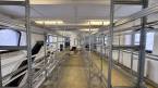 2. sala di montaggio con struttura in acciaio e magazzino al piano superiore, con montacarichi