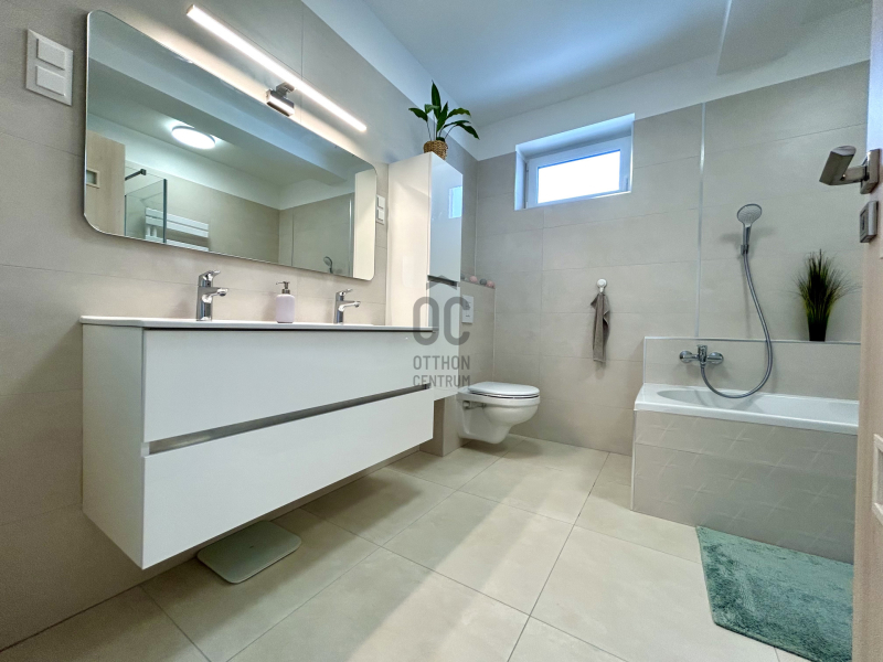 A 20 négyzetméteres terasz ideális baráti összejövetelekhez, ahol a gyönyörű panorámát élvezheted. Az ingatlan fűtése és hűtése hőszivattyús rendszerrel megoldott, így nemcsak energiatakarékos, hanem környezetbarát megoldást is kínál. A tetőszerkezet minden irányból a megszokottnál tovább eresztett, több árnyékot tart, így a meleg nyári napokon sem forrósodik fel az ingatlan. A falazata 30cm vastag tégla, melyet 20cm szigetelés fed.