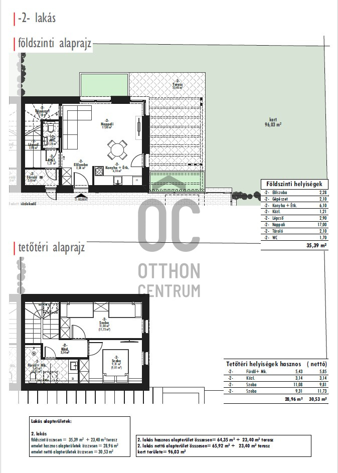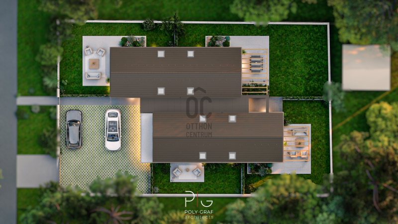 66 nm hasznos élettérrel, saját terasszal és saját kerttel.