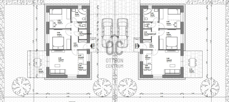 Összesen 12 ÖNÁLLÓ HÁZ épül, mindegyik KÜLÖN BEJÁRATTAL és SAJÁT KERÍTÉSSEL.