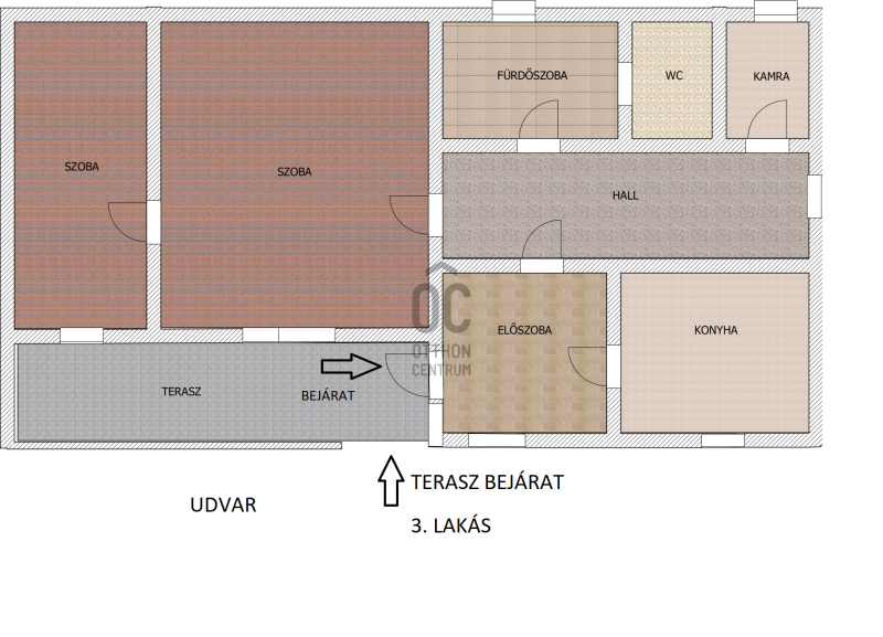 A lakás elrendezése praktikus: két szoba, hall, előszoba, konyha, fürdőszoba és egy tároló helyiség található benne. Az ingatlan, költözhető átlagos állapotú lakás,