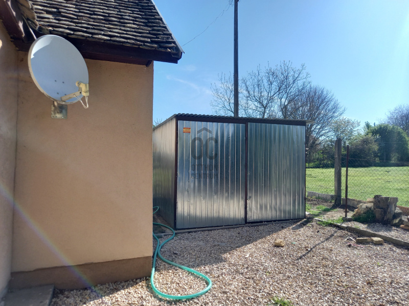 A ház homlokzata szigetelt, modern műanyag ablakokkal és szúnyoghálóval rendelkezik. Az udvaron egy autó tárolására alkalmas lemezgarázs van elhelyezve, amely a vételár részét képezi.