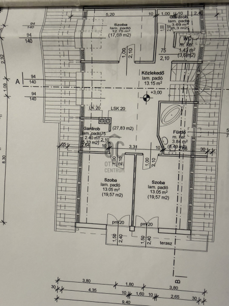 ( 3 hálószoba, gardrób, fürdőszoba, wc, közlekedő )
