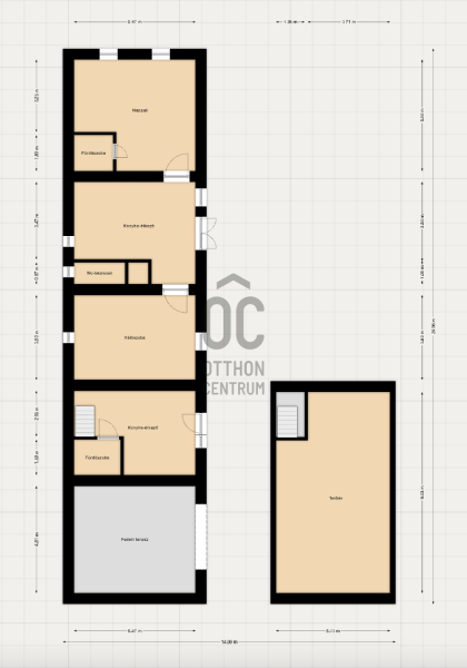 Melléképületből kialakított lakóegység (70,7 m², két szinten):