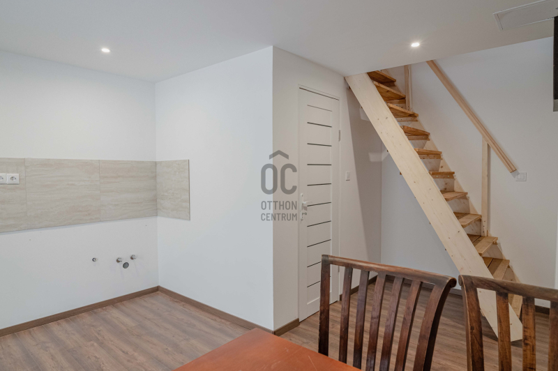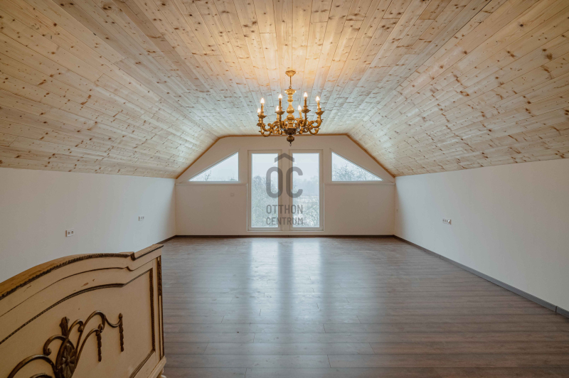 - Alsó szinten konyha-étkező és fürdő-WC, a tetőtérben pedig egy panorámás, világos nappali, amely tökéletes élettér vagy vendégtér