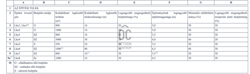 - Beépíthetőség: 30%