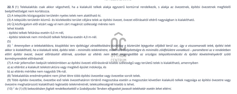 - Legnagyobb megengedett épület magasság: 6,5m